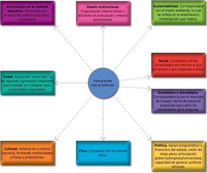 Vincularse de manera eficaz con el entorno del que forman parte, implica para las universidades tener certeza de ser pertinentes, en mucho más de un sentido. Necesitan tener pertinencia económica, es decir, impartir una formación que vincule de manera directa a sus egresados con el sector productivo y con el mercado de trabajo; por medio de la pertinencia tecnológica tienen que atender a la necesidad de que sus egresados sean capaces de utilizar las nuevas tecnologías de la información, de crear con ellas nuevos conocimientos y productos, así como de compartirlos.