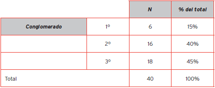 Asimismo, con el fin de indagar cómo se agrupan en cada estudiante las variables, se llevó a cabo un análisis de conglomerados, también conocido como análisis de clúster (Baranger, 2009; Hernández-Sampieri et al., 2010). Este análisis brinda la información sobre en qué conglomerado se ubica a cada sujeto, es decir cómo se configuran los perfiles de cada estudiante en función de las variables abordadas (autoestima y rendimiento académico).
