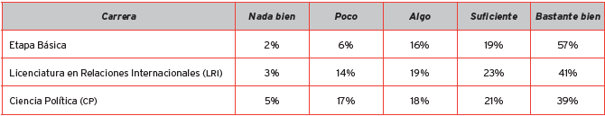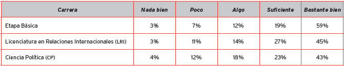 En el tema de la percepción por carrera, se visualiza que los alumnos de la etapa básica tienen una mejor percepción de las condiciones de las TIC en la facultad, que los que pertenecen a la licenciatura de Relaciones Internacionales y los de Ciencia Política; así como la percepción de desempeño de éstas en la institución.