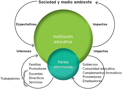 Esto no quiere decir que la educación sea sólo materia de responsabilidad social de las instituciones educativas, entre las que se encuentra la universidad. Toda organización, desde su propia RSC, tiene en la educación una de las materias que se deben atender al considerar el impacto de la organización en la sociedad en general y en sus partes interesadas, en particular: formación de los empleados, participación activa en la educación dentro del entorno en el que se desenvuelve la empresa, acciones de sensibilización, etcétera, (ISO 26000, 2010a; 2010b). Pero si bien la educación es materia de responsabilidad social de todas las organizaciones, las instituciones educativas tienen una especial responsabilidad en esta materia, pudiendo ejercer la función de catalizadores del proceso de desarrollo sostenible, sistematizado en los 17 ODS.