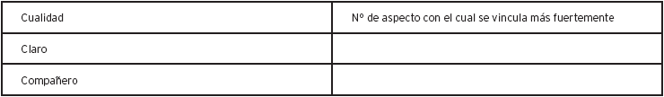 Analizar, debatiendo en el grupo, para cada una de las cualidades indicadas en la tabla, con cuál de los siguientes aspectos está más fuertemente vinculada (o de cuál depende en forma más marcada):