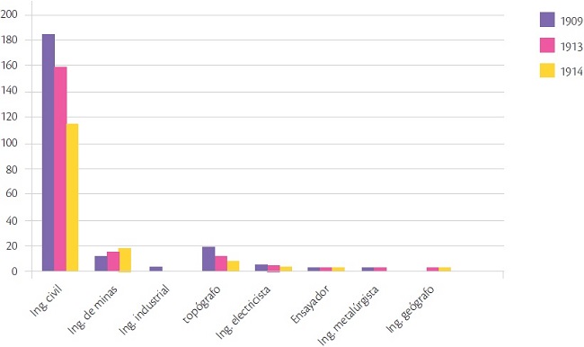 Con esta información pretendo hacer evidente que, durante el siglo XIX, la ENI tenía la solidez para atender los proyectos gubernamentales de modernización del país e, incluso, para resolver los problemas de la industria nacional. Sin embargo, su campo de acción laboral se vio severamente limitado y dañado por la llegada de empresas extranjeras que imponían sus reglas laborales y de operación, además de contratar arbitrariamente a los ingenieros extranjeros. Esto provocó que las carreras de ingeniería de la ENI asociadas a la industria entraran en franca decadencia (Ramos-Lara, 2013), dejando a la ingeniería civil como la más importante, en la ENI y a nivel nacional, hasta mediados del siglo XX, debido a su demanda en la construcción de obras públicas y de infraestructura (Domínguez, 2013).