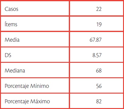 Para medir la confiabilidad de la escala, se calculó el coeficiente alpha de Cronbach en Excel mediante la varianza de los ítems, cuyo valor fue de 0.57, lo que significa una confiabilidad moderada.