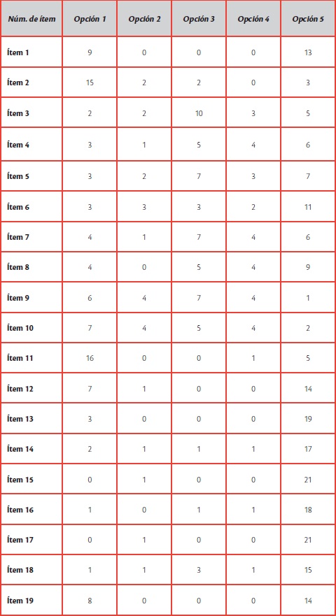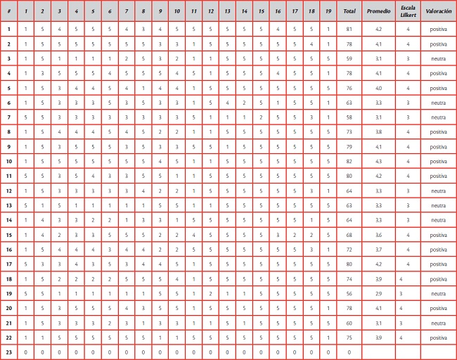De acuerdo con lo anterior, la actitud de los encuestados se evalúa como: 5: muy positiva; 4: positiva; 3: neutra; 2: negativa, y 1: muy negativa (Anexo 3. Análisis de respuestas por ítems).