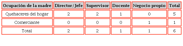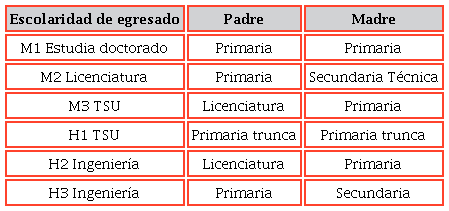 Al plantear preguntas de tipo retrospectivo a los egresados sobre los estudios que alcanzaron sus padres, esto fue lo que respondieron. Una de las egresadas con negocio propio comenta que asistió a la UT porque su mamá la inscribió sin ofrecerle opción, a pesar de que antes “no se acostumbraba a que las mujeres estudiaran” (M3).