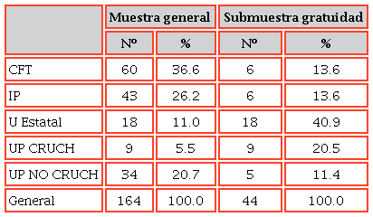 En tal panorama, aproximadamente tres de cada cuatro estudiantes (76.7%) no se constituye en población objetivo, sea porque no cumple con los requisitos de perfil socioeconómico o bien está matriculado en una institución no adscrita. Alto déficit de cobertura que cuestiona la política de gratuidad como medida efectiva de financiamiento, por cuanto un significativo contingente del estudiantado debe asumir los altos costos derivados de la formación con cargo privado, sea mediante el presupuesto familiar o el endeudamiento. Esta situación se hace particularmente compleja para estudiantes de institutos profesionales o centros de formación técnica, estamentos caracterizados por el vulnerable perfil socioeconómico de su alumnado (Larrañaga, Cabezas y Dussaillant, 2013), donde las coberturas reales alcanzan un 18.1% y 23.8% respectivamente.