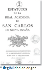 Estatutos de la Real Academia de San Carlos de Nueva España, México, Imprenta Nueva Mexicana de Don Felipe Zúñiga y Ontiveros, 1785, (1785 M4ACA XXV-8, BN).