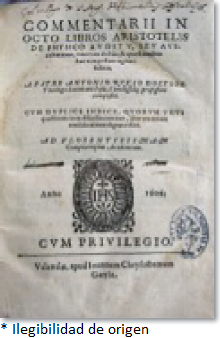 Antonio Rubio [1548-1615] (1615), Commentarii in octo libros. Aristotelis De physico avditv vna cvm dvbiis et qvestionibvs hac tempestate agitari solitis, Compluti, Ex oficina Iusti Sanches Cresho, 1605 (RFO 186 RUB.c.1605, BN).