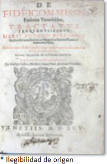 Marco Antonio Peregrino (1595), De fideicomissis proesertim universalibus, tractatvs freqvetissimvs, ómnibus tam in scholis, quam in causarum foro versantibus admodum utilis, ac pernecessarius, Venetii, Rubertum Meiettum (RFO 94-42107, BN).
