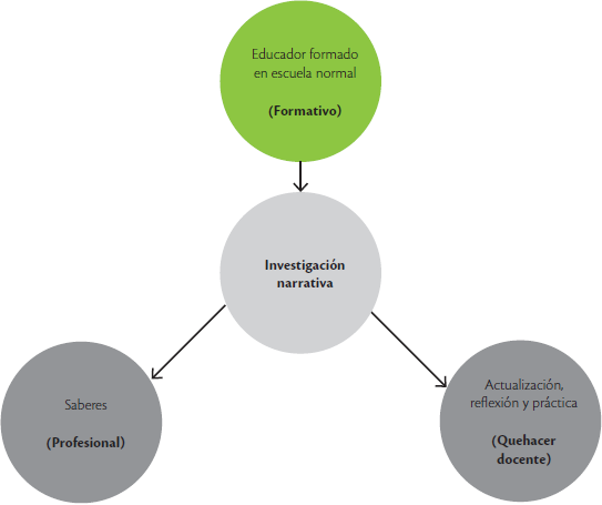La investigación narrativa cobra gran relevancia en los estudios que se realizan en la formación de educadores porque parten de la experiencia, la reflexión sobre la experiencia y la selección de hechos que cobran sentido para quien los narra. Como lo menciona Trahar (2010: 51), “la investigación narrativa, fundada en la hermenéutica interpretativa y la fenomenología, se centra en los significados que la gente atribuye a sus experiencias”, a los hitos relevantes en su vida profesional y personal, a los acontecimientos que marcaron su vida, al sentido de la profesión y a los relatos seleccionados que vienen del pasado para comprender el presente. Estos mismos guiaron el proceso investigativo y posibilitaron la construcción de las categorías de análisis que se detallarán más adelante.