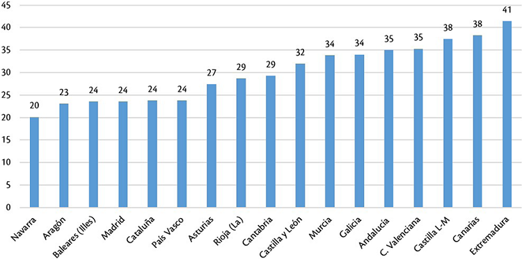 España se estructura en un total de 17 comunidades autónomas (CC AA), mismas que tienen competencias en el ámbito educativo, lo que se traduce en que puedan existir enormes diferencias en algu-nas cuestiones universitarias. Por ello, para un mejor análisis de los resultados sobre el incremento de inversión privada, se incluye una perspectiva autonómica que nos permite visualizar el incremento de tasas académicas (grado y máster) y el porcentaje de alumnos que se benefician de ayudas públicas a nivel autonómico, con el fin de estudiar con mayor profundidad las regiones que acentúan las desigualdades.