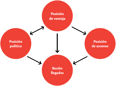 Los recién llegados mantienen una relación de inferioridad con quienes juegan una posición de ventaja y tienden a participar en las líneas de investigación desarrolladas por estos últimos. Esto no sucede así cuando el recién llegado tiene vínculos con investigadores(as) mejor posicionados en el campo científico, que le permiten trabajar alguna línea u objeto de investigación de manera novedosa y le abren la posibilidad de darse a conocer e ir ascendiendo en su posición.