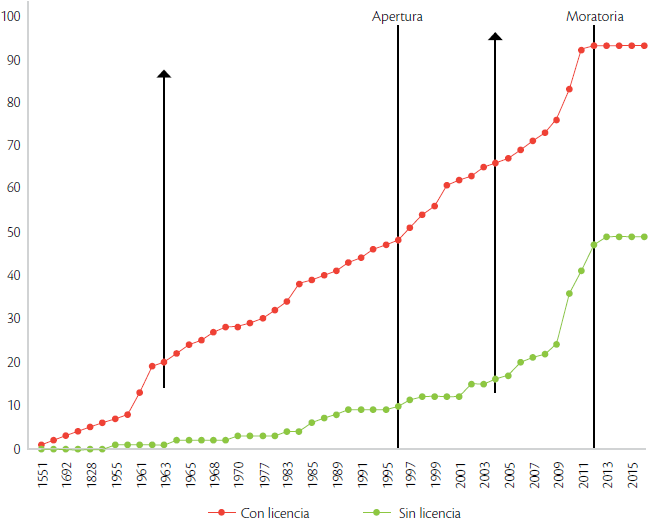 A partir de 1990, comenzó un proceso de “liberalización”1 de la educación en Perú, que llevó a la creación de decenas de universidades con fines de lucro. Casi paralelamente, empezó un movimiento inverso de reforma o “contrarreforma”, que veía el proceso de liberalización como perjudicial en términos de disminución de la calidad y “mercantilización” de la educación. Así, en 2012 se aprobó una “moratoria de universidades” y, en 2013, una ley que creaba estándares y un sistema de fiscalización de las universidades, con el objetivo de estandarizar la oferta, incluso eliminando la que no se ajustara a “condiciones básicas de calidad”. Estos cambios se inscriben en un proceso de “reforma” y no son meras “mejoras” (Guzmán, 2005), en el sentido en que buscan cambiar la orientación general de la relación entre Estado y educación: de basarse en la dinámica del mercado a basarse en el control estatal de la oferta.