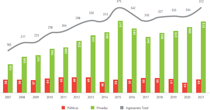 La oferta no sólo se ha reducido, sino que se ha concentrado en pocas empresas, algunas de las cuales -coincidentemente-, tienen mucha influencia política7 y estuvieron bastante a favor de la reforma universitaria.