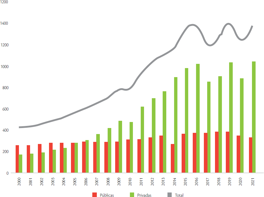 Esta “liberalización” no fue bien vista por todos y pronto se instaló una narrativa según la cual “existían demasiadas universidades”, que estaban “regalando títulos”, y convertían a la educación un “negocio”. Adicionalmente, se resaltó el “fraude” que significaba la existencia de universidades “garaje” (Pásara, 2004; Ñopo, 2016; 2021).