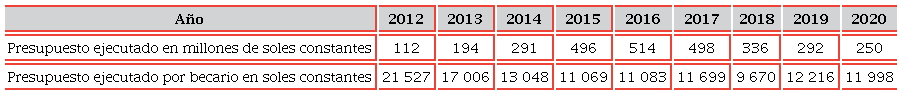 El Estado ha ofrecido becas a los estudiantes, a modo de subsidio a la demanda, en el programa conocido como “Beca 18”. Sin embargo, el programa ha perdido alcance y recursos en el transcurso de los años. Si bien esta política es compatible con la meta de aumentar el acceso a la educación universitaria, actualmente es insuficiente (ver Gráfico y Cuadro 3).