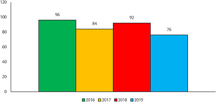 A continuación se muestran los resultados de la aplicación del instrumento dirigido a 348 egresados de las escuelas normales públicas del estado de Veracruz. En primera instancia se expone a detalle la caracterización de la muestra aplicada. Los encuestados pertenecen a distintas generaciones y planes y programas de estudio de las EN, en este sentido se clasifican en 96 de 2016, 84 de 2017, 92 de 2018 y 76 de 2019. La elección de la muestra no incluyó a los egresados de la generación 2020 pues al momento de la aplicación se encontraban en proceso de ingreso al servicio profesional docente (Figura 1).