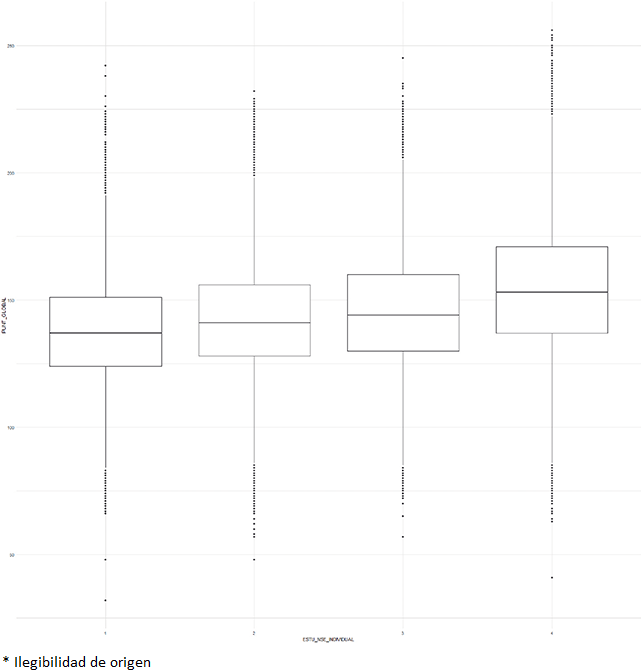 La Figura 1 presenta las diferencias en los resultados en el puntaje global por nivel socioeconómico en los datos de toda la población: