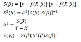where: S(β) is the residual sum squares, S2 (β) is the variance-covariance matrix, (^2 is the variance, Z(β) is the partial derivative matrix, T is the number of observations, K is the number of parameters in the model, and is the variance of mean estimated observation i.