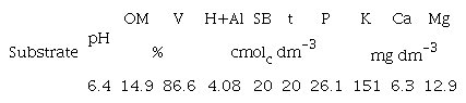 When the plants were ready for transplantation (i.e., 15 cm in height, from collar to apex), they were transferred to plastic bags with a capacity of 2 dm3 that contained Carolina Soil® commercial substrate (Table 1), fertilized with 4 g dm-3 slow-release encapsulated fertilizer (Osmocote®; NPK formulation 14-14-14), as recommended by Menegatti, Souza, and Bianchi (2020) for the production of peach rootstocks.