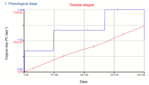 The phenological distribution corresponding to the amount of temperature accumulated at each stage of the plant was obtained, as illustrated in Figure 1.
