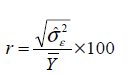 r is the standardized repeatability (%), is the residual variance, and