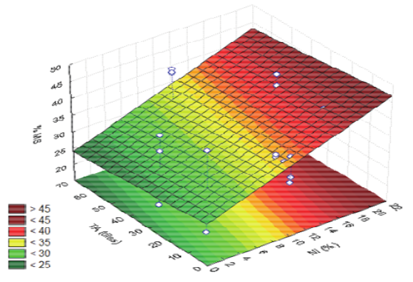 in which: %AL = lactic acid content; TA = opening time; NI = inclusion level.