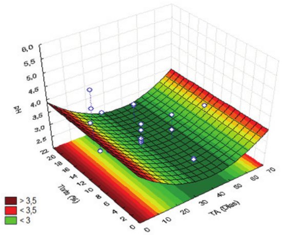 Through statistical analysis, we obtained a simplified descriptive model for the behavior of the response variable (pH):