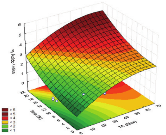 Through statistical analysis, we obtained a simplified descriptive model for the behavior of the lactic acid content (%AL)