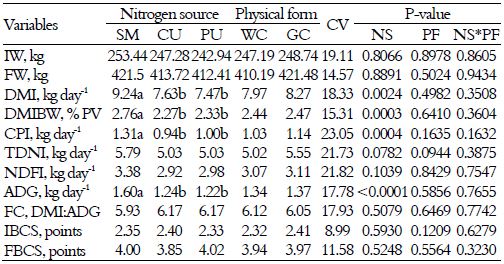 There was no interaction (p > 0.05) between dietary nitrogen source and corn grain physical form on consumption and performance variables (Table 2).