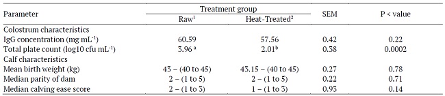 Armengol and Fraile (2016) in a research on 287 calf stated a reduction in terms of morbidity (9.8%) and mortality (3.7%) in calves fed heated (60°C for 60 min) colostrum and milk in comparison with animals receiving unheated colostrum and milk during the first 21 d of life.