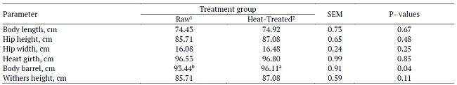 In our research as it was expected, there was no difference in skeletal growth except body barrel between calves received heated and unheated colostrum during 63 days (Table 6). This different seems to be because of bloat in calves that increased body barrel diameter in changing diets from milk to starter.