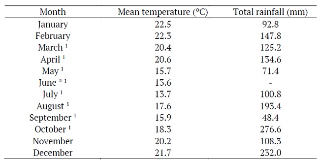The database was provided by the owners of Olho d'Água dairy farm, located in the county of Jaboticaba, in the northwest of the state of Rio Grande do Sul, Brazil. The climate of the region is classified as Cfa type, sub-tropical, with hot summers and well distributed rains throughout the year, with average temperature of 22ºC in the hottest period (January, February and March) (Peel, Finlayson, & McMahon, 2007). The temperature and rainfall data are showed in the Table 1.