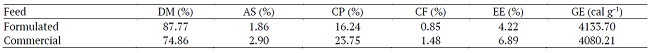 When the grafted bars were returned to their respective colonies, energy supply was provided with a 1:1 solution of water and sugar (sucrose), plus 38 g of a supplement based on linseed and palm oils, concentrated soybean protein and beer yeast adapted from Sereia et al. (2013), with 16.2% of crude protein (CP) or another commercial (BeeFood®) with 23.7% of CP (Table 3). The feed intake was calculated based on the dry matter, initial dry weight difference and dry weight of leftovers.