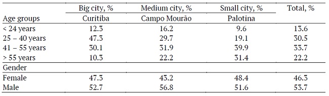Interviews were conducted with 519 beef buyers in the three different cities: Curitiba, Campo Mourão and Palotina; in the Paraná, State, Brazil south. The interviewees were classified into four age groups according to Brazilian demographic pyramid: (i) <24 years, (ii) between 25 and 40 years, (iii) between 41 and 55 years, and (iv) >55 years. Sample population used in the present study is from three different cities (Table 1).