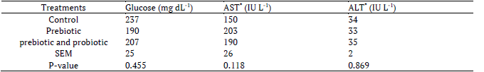 Keywords: blood constituents, chicken, prebiotic, probiotic, histomorphometry.