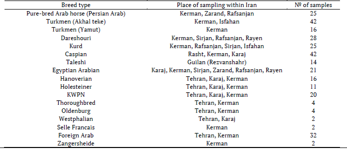 We acknowledge the technical supports from the Research-Based Karmani Horse Company. Also, we wish to thank the enormous farmers who helped us in collecting the horse samples across the country.