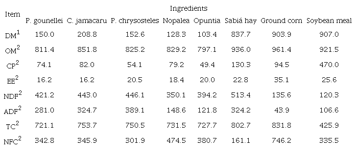 The chemical composition of cacti can vary with climatic factors, plant age, time of year, irrigation, and techniques used for thorn removal (Silva, Lima, & Rêgo, 2013; Magalhães et al., 2018). Generally, cacti are recommended to be associated with foods rich in fiber and protein when used in ruminant feed, due to its high-water content and non-fibrous carbohydrates (NFC) in its composition (Ben Salem, 2010; Ramos et al., 2013; Catunda et al., 2016).