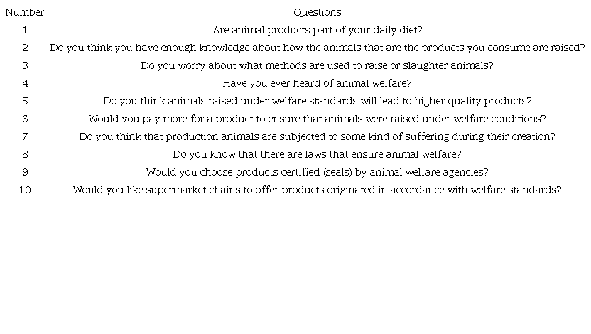 In Belém, Pará State, Brazil, however, there are no results regarding what the consumer thinks about the welfare of production animals and how important this issue is when choosing a product. Thus, this research aimed to identify the level of knowledge of consumers of products of animal origin about the welfare of production animals, in Belém, Pará State, Brazil.