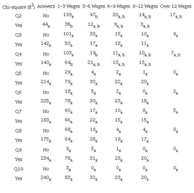 In question 2, it was identified that consumers with an income between 1 and 3 minimum wages (199a, b consumers) had the highest number of negative responses “No” (p < 0.05), thus demonstrating less knowledge about the animal welfare theme and heard little about it, diverging widely from the other salary ranges (3-6 - 64a, b, 6-9 - 20a, b, 9-12 - 14a, b, and over 12 -17a, b ) (Table 5). On the other hand, consumers with incomes between 3 and 6 wages (47b consumers) differed (p < 0.05) from salary ranges 6 and 9 (20a, b consumers), 9 and 12 (14a, b consumers), and over 12 (17a, b consumers). However, among these groups there were no differences, so consumers with salary ranges 6 and 9, 9, and 12 and above 12 have similar knowledge.