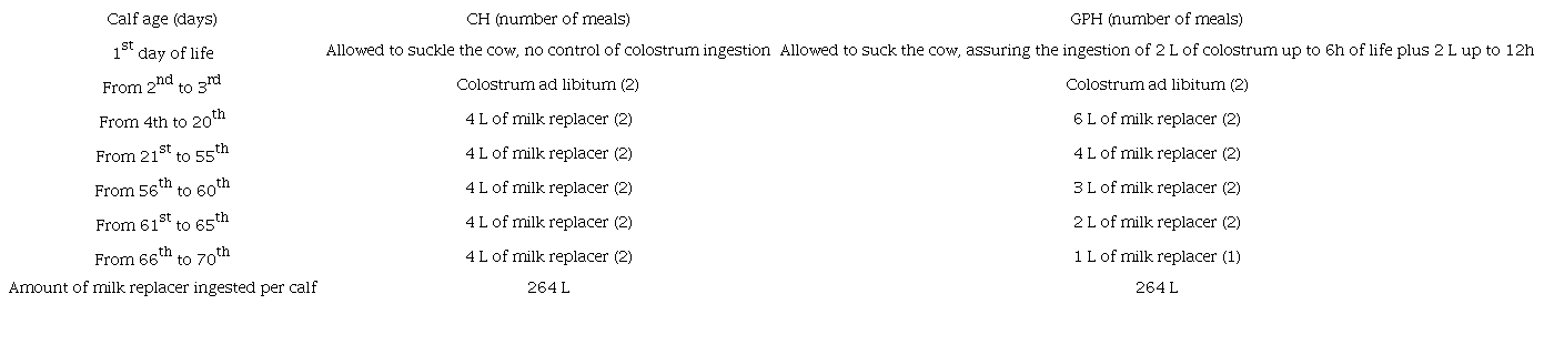 We are grateful to Mauricio Vital, manager of Germania Farm, who offered the opportunity and the best conditions for the development of this study. We also thank the farm staff, Eliane, Jucilene, and Cláudia, the calf caretakers, for their attention and motivation to adopt the GPH, and to Désirée Ribeiro Soares and Ana Carolina de Freitas Pereira, for their help during data collection.