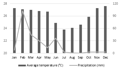 Data collection was carried out between June and September 2019, from ten L. vannamei shrimp ponds (area: 0.25-0.50 ha; densities: 50-80 animals m-3) of 10 familiar producers (P1-P10), supplied with water from the Paraíba River (physicochemical characterization in Table 1; provided by a laboratory service provider), using post-larvae in the PL10 stage (approximately 10 d; obtained from commercial laboratories) to start the cultivation. The average temperature and the accumulated precipitation during the data collection period were 24.4°C and 40.7 mm, respectively (Figure 1). All ponds evaluated in the study are equipped with an aerator and commercial feed was used. Management prior to cultivation included liming, addition of sodium chloride and potassium chloride, depending on the producer. The maintenance of limnological conditions in the ponds was carried out using pumping programs that supply losses with evapotranspiration. The cultivation time varied between 77 and 98 days.