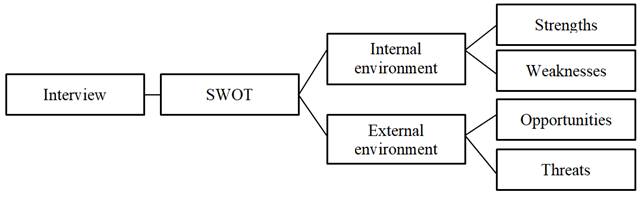 Then, the SWOT analysis was performed, which stands for: Strengths, Weaknesses, Opportunities and Threats (Sousa et al., 2019). It was run in accordance with the internal and external environments (Figure 1).