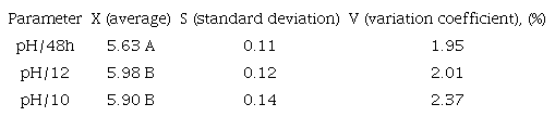 The obtained results were subjected to statistical analysis. There were calculated the average values and values of variation coefficients. The normality of results distribution was examined using the Shapiro-Wilk test. The significance of the differences was calculated by Duncan group homogeneity test (p ≤0.05). Statistical analysis was performed using the STATISTICA 12.5 software (StatSoft, Inc., 2011).
