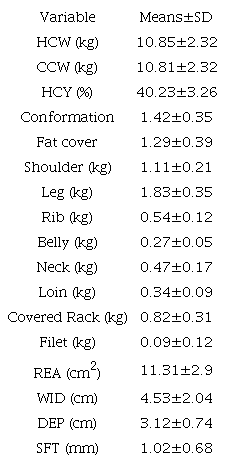 Table 3 shows the means of dissection and physical-chemical analysis data for the 12th rib area.
