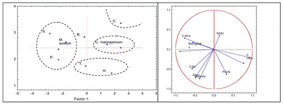 Data collected considering the different hydrological cycles (flood and drought) as the determining factor on the variables of proximal composition and mineral composition. Data in blocks were evaluated using one-way ANOVA and, subsequently, the Tukey test at 5% of significance (Zar, 1999). A multivariate analysis of the Principal Components Analysis-PCA (correlation matrix) was used to order the main species of fish landed in the state of Amazonas in relation to their mineral composition (macro and micro minerals) (Zar, 1999).