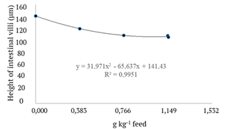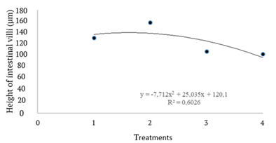 Considering that the intestinal mucosa is more intact, the higher the villi and the nutrient absorption capacity (Zhaxi et al., 2020). Such results are promising for fish nutrition, because there is an association between intestinal villi importance and the nutrition and health of animals.