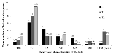 Figure 3 shows the values of the sexual behavior characteristics of the kids in the Control and NaCl administered groups. Male sexual behaviors of the kids in C, T1 and T2 groups at the eight months old age could not be suppressed (p > 0.05) either by the ITI of 20 or 40% NaCl (Figure 3).