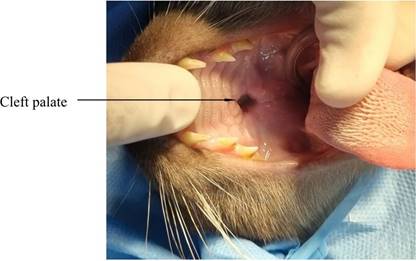 Cleft palate is diagnosed first through inspection and visualization of the condition in the oral cavity. In patients with primary cleft palate, the diagnosis is simple due to its easy visibility, being evident soon after the animal is born (Silva et al., 2006; 2009).