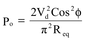 [23]The output power (Po) of the half bridge inverter fed by a DC voltage (Vd) is given by the following equation 24: